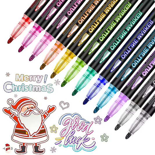 Aurece - Fluorescent & Metallic Double Line Outline Markers (8-48 Colors) – Perfect for Greeting Cards & Lettering